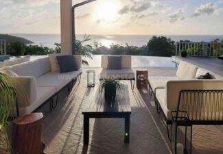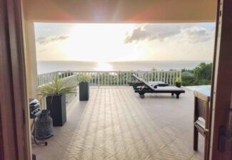 Villa Divina seamlessly blends indoor and outdoor living, harmoniously fusing expansive interior spaces with enchanting exteriors. Embracing the essence of Caribbean living, the villa boasts panoramic views, generous patios, an outdoor haven complete with a BBQ station, a welcoming bar area with high stools, and an expansive dining space adorned with yet another 8-seater table. Plush deck chairs thoughtfully placed around the infinity pool invite mingling and repose, epitomizing the Caribbean outdoor lifestyle.