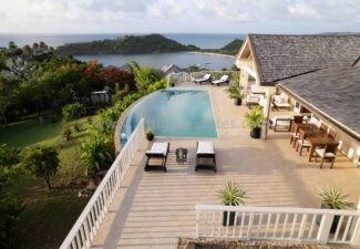 Nestled atop the scenic Galley Bay Heights, Villa Divina commands panoramic vistas of Galley Bay and Deep Bay, creating an enchanting oasis. This villa takes center stage in an opulent village, showcasing a captivating array of architectural marvels.