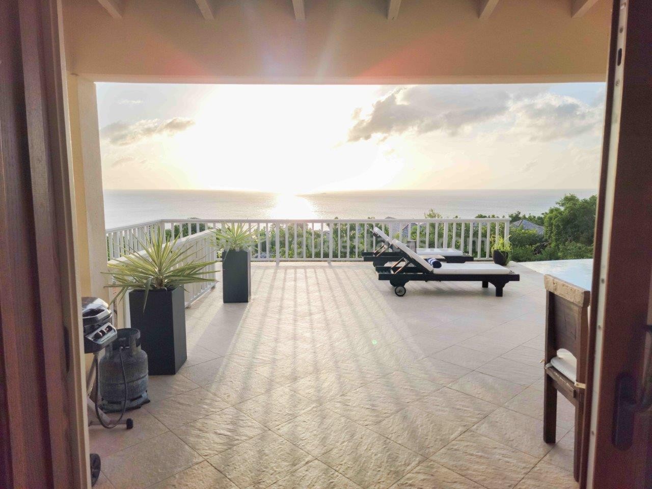 Villa Divina seamlessly blends indoor and outdoor living, harmoniously fusing expansive interior spaces with enchanting exteriors. Embracing the essence of Caribbean living, the villa boasts panoramic views, generous patios, an outdoor haven complete with a BBQ station, a welcoming bar area with high stools, and an expansive dining space adorned with yet another 8-seater table. Plush deck chairs thoughtfully placed around the infinity pool invite mingling and repose, epitomizing the Caribbean outdoor lifestyle.