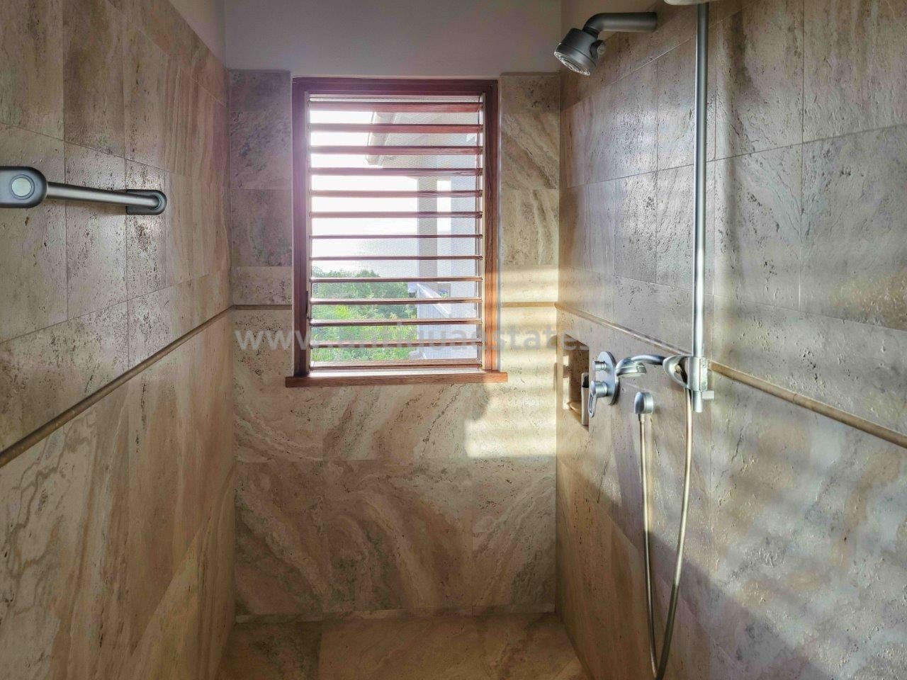 Three equally inviting bedrooms on the other side of the house feature snug double beds, side tables, and generously appointed walk-in closets. Each bedroom boasts its unique artistic flair, lending a distinct character to the villa. The private bathrooms in each room are adorned with bespoke fittings, accentuating the individuality of each living quarter.