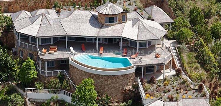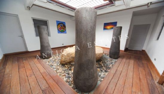 Villa Sugar Mill is now the jewel of Galley Bay Hill. It is clad with an exquisite majestic architectural hand crafted natural stone wall. On the way to this villa you can’t help but notice the roof top garden flourishing with tropical flowers; this garden continues on the ground levels where native palms and various tropical flowers are added forming an immense garden where beauty and serenity thrive.