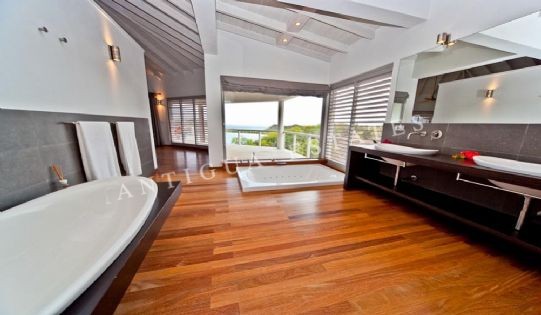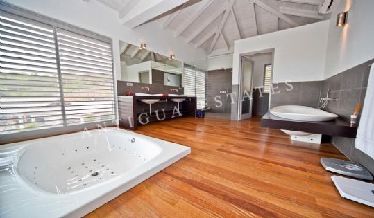 The master bedroom and the three junior suites are complemented by their own verandas overlooking the inviting Caribbean Sea. The fifth bedroom is conveniently laid out on the lower level of the villa. It is en-suited with its own bathroom and is also classily furnished; although this room was originally built for a nanny/maid it can easily be used for to house a guest.